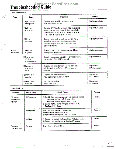 Parts for Samsung MU3050W/XAA: Oven Troubleshooting Guide Page 3 Parts