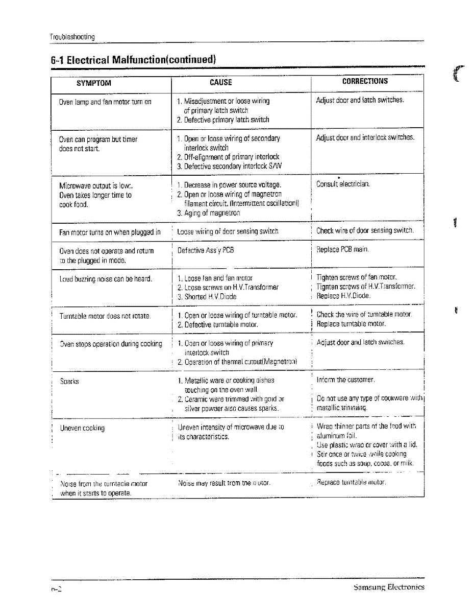 Parts for Samsung MW6371G/XAA: Oven Troubleshooting Page 2 Parts
