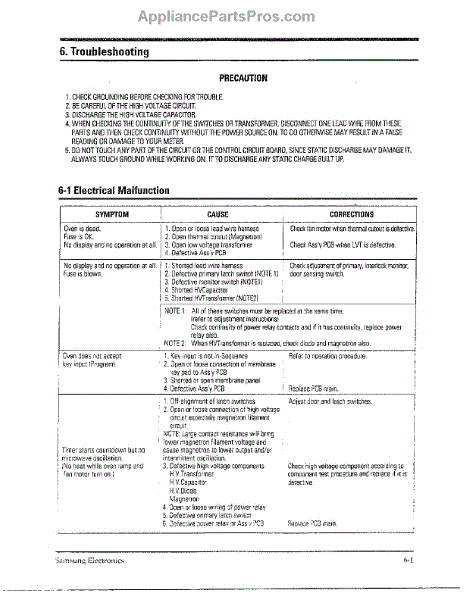 Parts for Samsung MW5580W/XAA: Oven Troubleshooting Parts