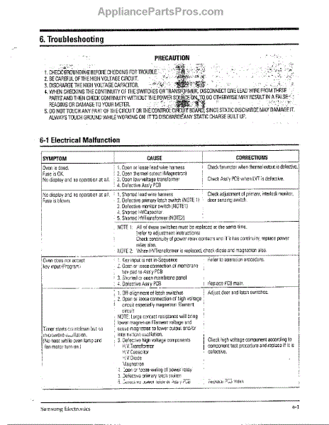 Parts for Samsung MW6470W/XAA: Oven Troubleshooting Parts
