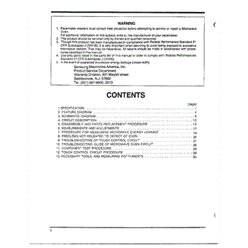 Parts for Samsung MW4530U/XAA: Oven Warning / Contents Parts