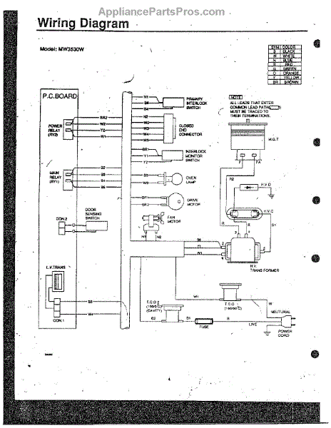 Parts for Samsung MW3530W/XAA: Oven Wiring Diagram Parts