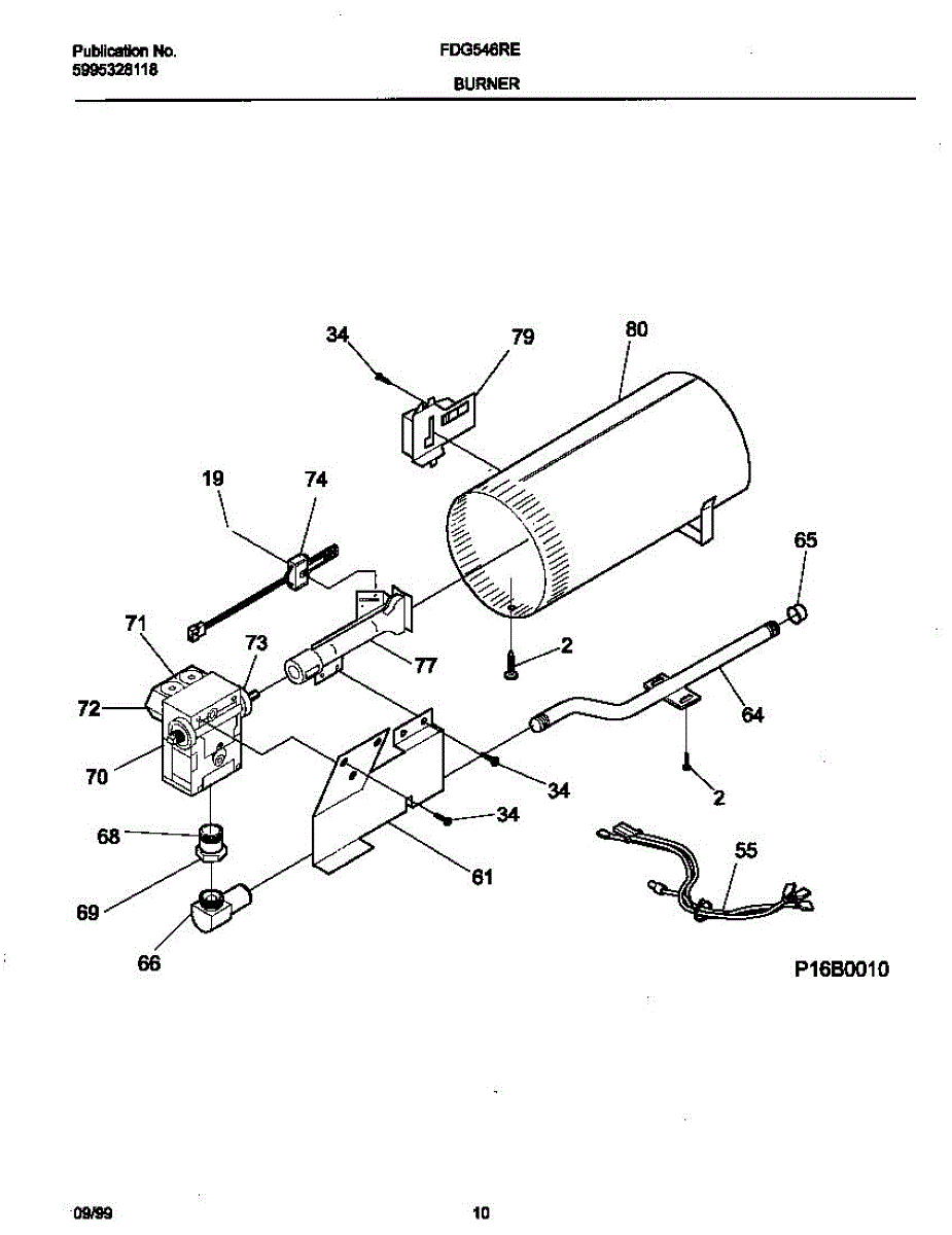 Parts for Frigidaire FDG546RES3: 06 - P16b0010 Burner,Valve Parts