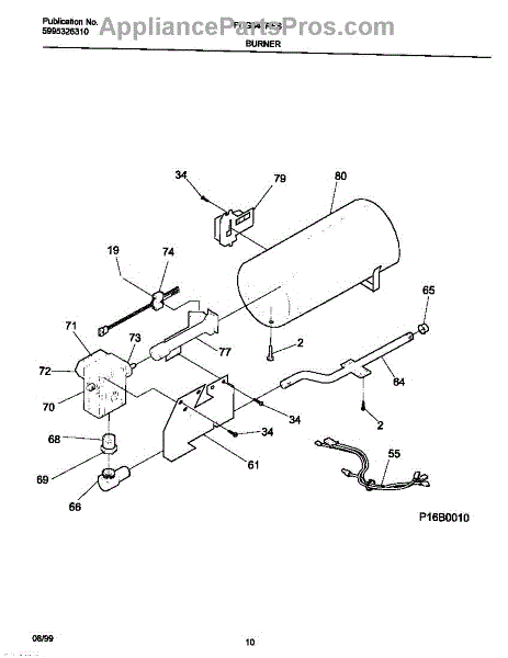 Parts for Frigidaire FDG647RFS1: 06 - P16b0010 Burner,Valve Parts