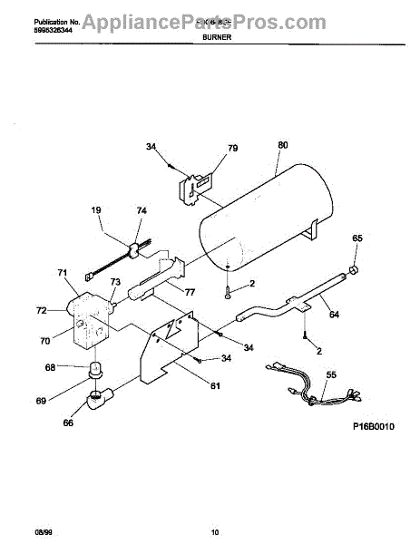 Parts for Frigidaire FDG648GFS1: 06 - P16b0010 Burner,Valve Parts