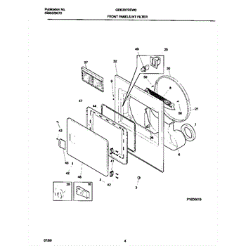 Secures the dryer door to the cabinet and provides a smooth pivot point. Replace this hinge if bent, worn, or broken to restore proper door alignment.
