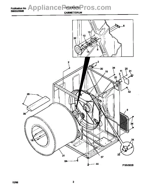 Parts for Frigidaire FDG216RES0: 02 - P16v0036 Dry Cab,Heater Parts