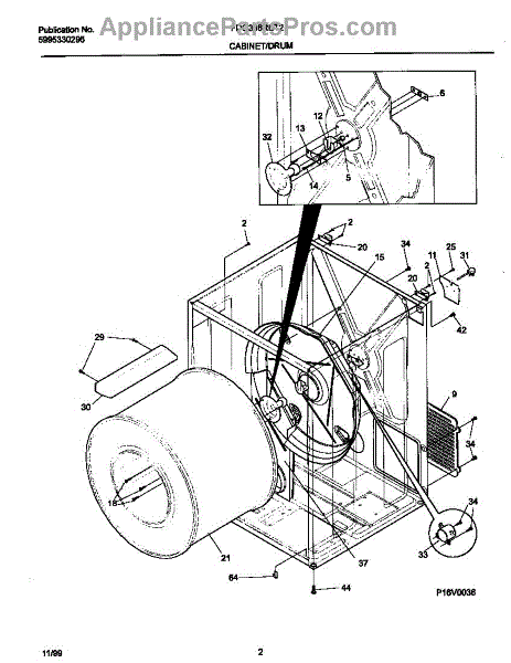 The Dryer Drum Bearing is an OEM part for Frigidaire dryers. It supports the dryer drum, ensuring smooth rotation during the drying cycle. This part attaches to the inside of the rear panel of the cabinet, offering support to the dryer drum.