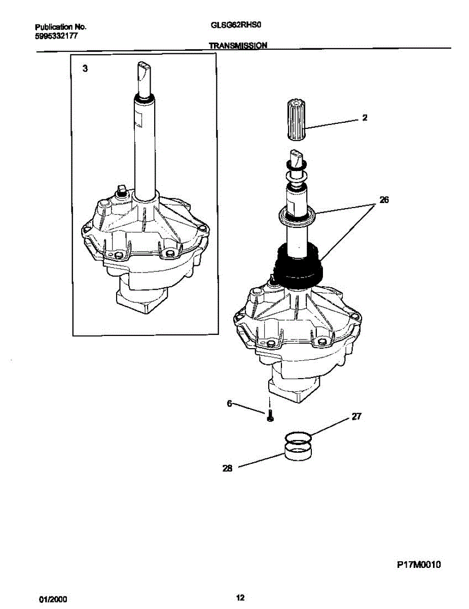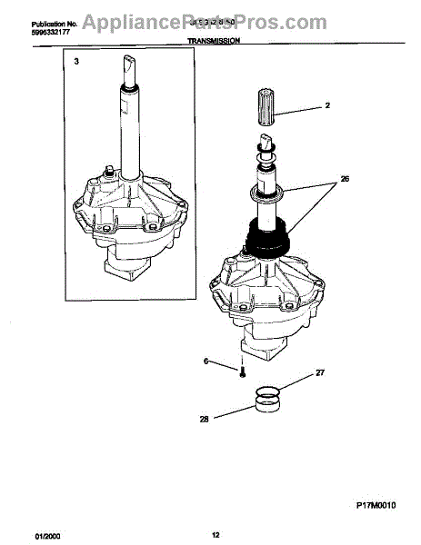 This transmission assembly drives the agitation and spin cycles by transferring motor power to the tub. Replacing a worn transmission helps restore proper wash action and spin performance.