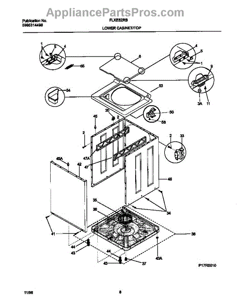 This genuine OEM part is a washer lid. The washer lid is the main piece that covers the washer. Over time, a washer lid can become damaged to the point where it no longer closes securely. If the washer lid is no longer closing all the way or is severely cracked or damaged, it will need to be replaced.To replace this part, start by making sure the washer is unplugged. After it has been powered off, proceed to take a putty knife to lift to release the two retaining clips that secure the washer's main top. Once released, proceed to remove the lid lock assembly wire connector. Fully remove the main top and set it upside down. Release the tension on the lid springs and detach the springs from the main top and hinge bars. Using a Phillips head screwdriver, remove the screws that secure the hinge bars to the lid. Push the hinge bars through the bearings then twist the bars to remove them. This will separate the lid from the main top. Take the new lid and align it with the main top. Insert the hinge bar between the main top and bearing while threading the screws to secure the new top. Reinstall the top panel and connect the wire harness. This replacement part is sourced directly from the manufacturer and is compatible with Frigidaire, Electrolux, Gibson, Kelvinator, and Westinghouse brand washers.