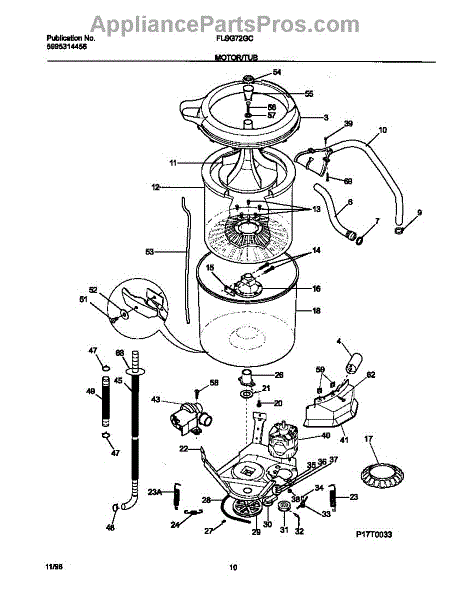 The Spin Bearing Washer is an OEM part for Frigidaire washing machines. Situated inside the transmission housing, this thin metal washer acts as a subsurface support for the belt pulley bearing. The spin-bearing washer facilitates smooth, balanced rotation essential for agitated and spun wash cycles. Causes of a bad spin-bearing washer include wear and fatigue from years of successive rotations, potentially allowing excessive movement between housing components. Symptoms of a bad spin-bearing washer involve: