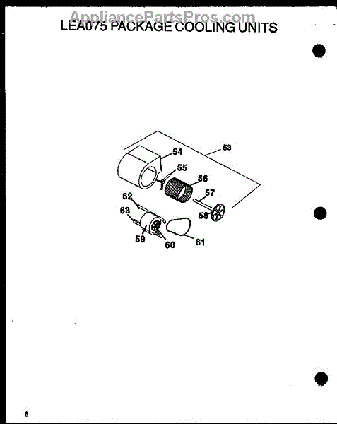 Parts for Amana LEA125A003A/P1160405C: Lea075 Package Cooling Units (Lea075a003a / P1160401c) (Lea075a004a / P1160402c) Parts