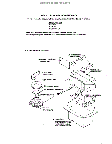 Parts for Sharp R-520DK: Packing And Accessories Parts