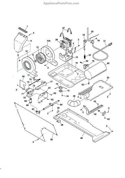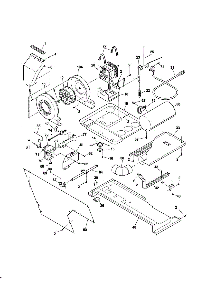 The blower housing assembly encloses the blower wheel and channels air through the unit's coils. Replacing a cracked or warped housing helps restore smooth airflow and reduce blower noise caused by rubbing or misalignment.