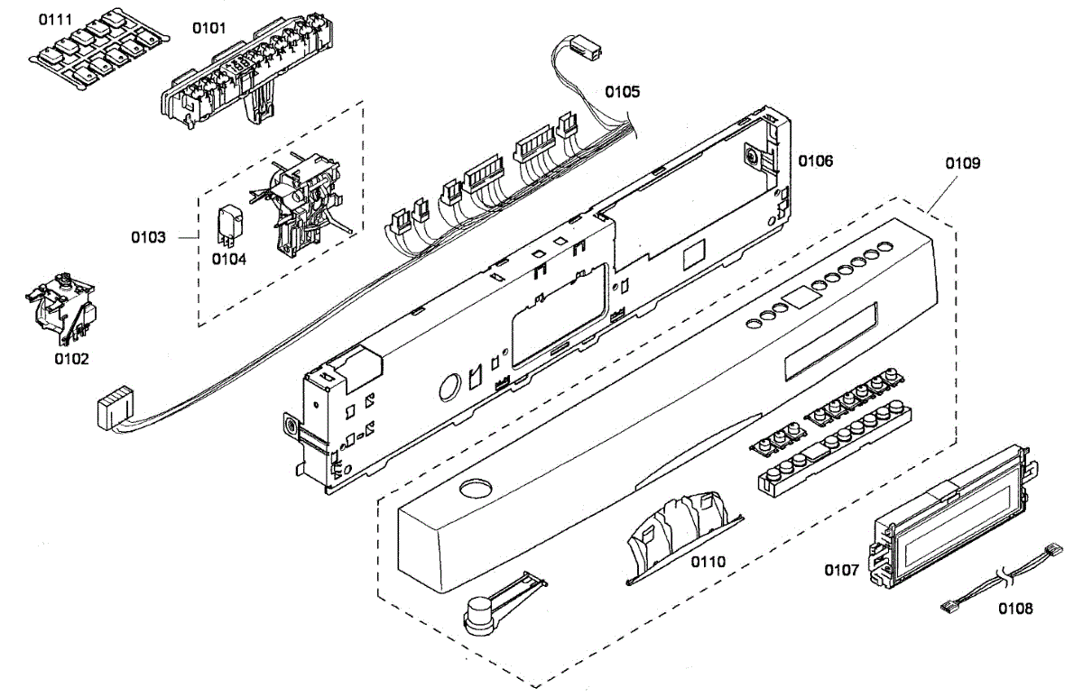 Cable harness for dishwasher door control panel. Replaces damaged, frayed, or corroded wiring harness. Restores electrical connections between components.