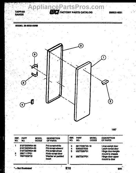 Parts for Frigidaire 36-3052-23-09: 06 - Panel Compartment Parts