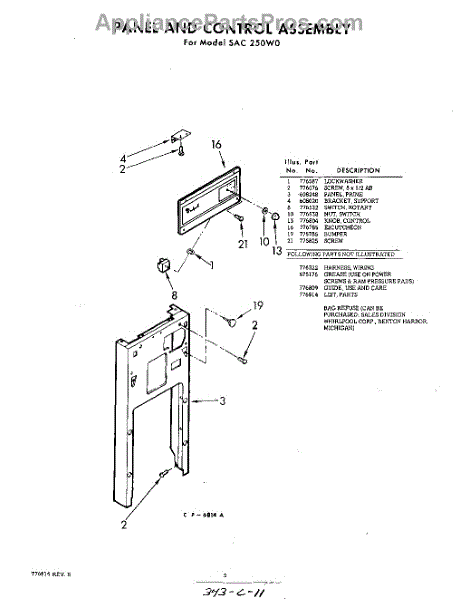 Parts for Whirlpool SAC250W0: 05 - Panel And Control , Lit / Optional Parts