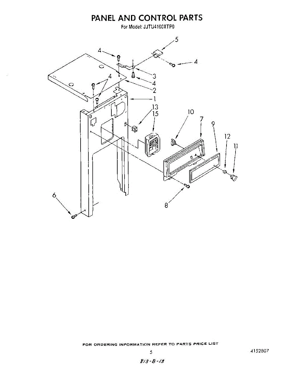 Parts for Whirlpool JJTU4100XTP0: 05 - Panel And Control Parts