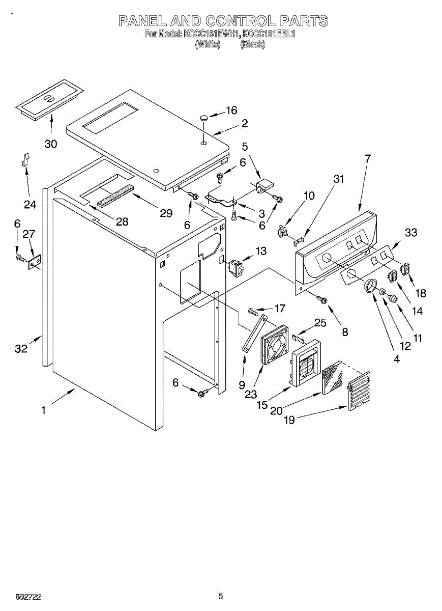Parts for Kitchenaid KCCC151EBL1: 05 - Panel And Control Parts