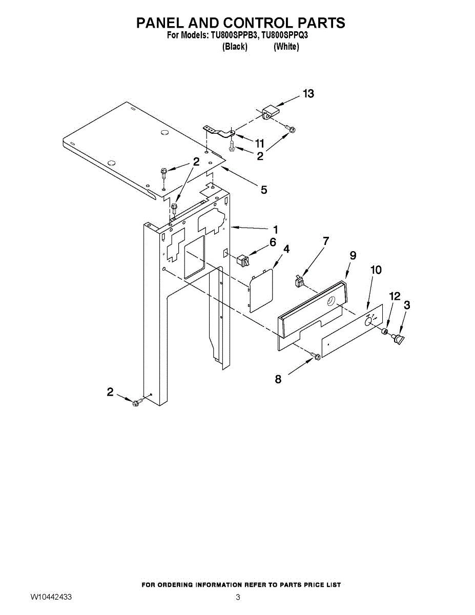 Parts for Whirlpool TU800SPPQ3: 03 - Panel And Control Parts