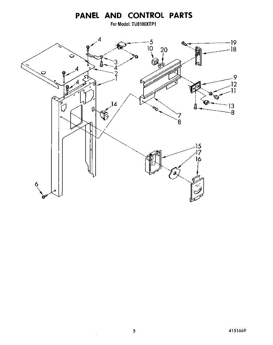 Parts for Whirlpool TU8100XTP1: 05 - Panel And Control Parts