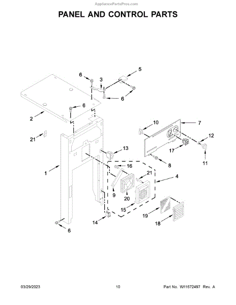 Control panel for trash compactors. Installs on the front face to house buttons and display. Replace if cracked, damaged, or worn from daily use.