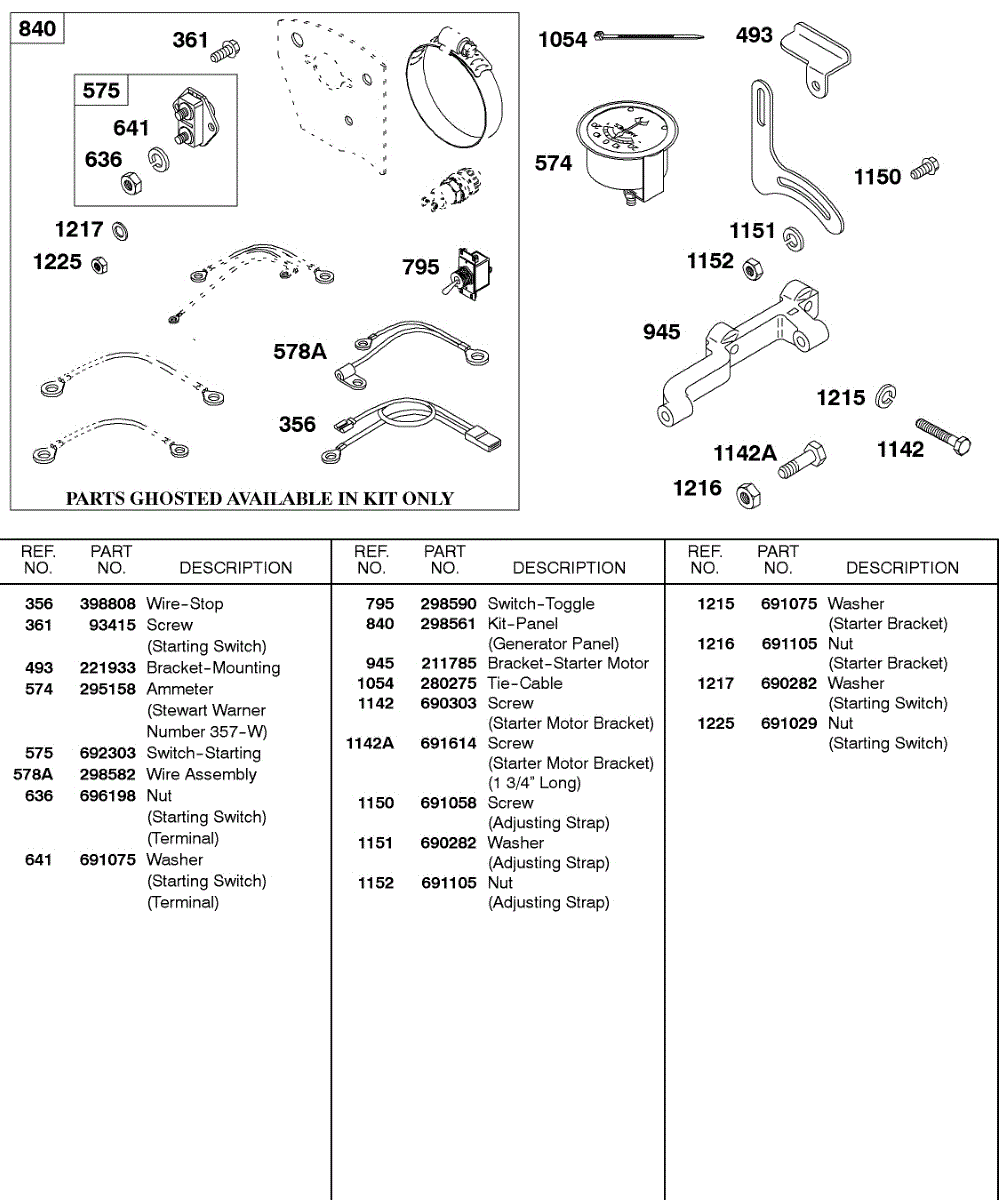 Parts for Briggs & Stratton 326431-0173-99: Panel Kit, Gages, Wires Parts