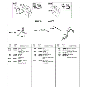 Parts for Briggs & Stratton 138437-0084-01: Panel Kits, Wires Parts