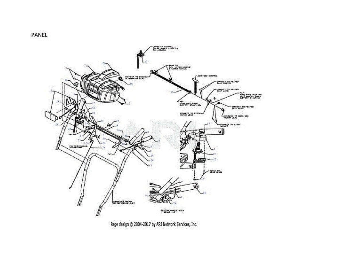 Handle panel assembly for gas snowblowers. Mounts to control area of machine. Replace if cracked, broken, or damaged from impact or wear.