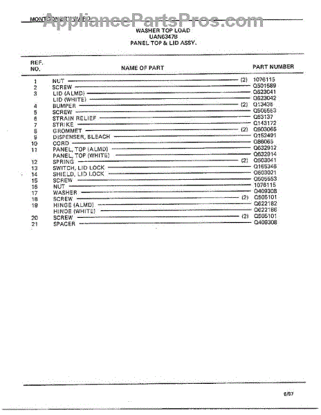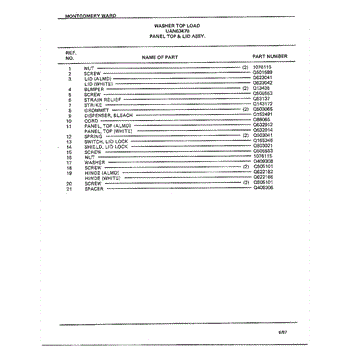 Parts for Frigidaire 6347B: Panel Top And Lid Assy Page 2 Parts