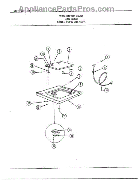 Parts for Frigidaire 6337B: Panel Top And Lid Assy Parts