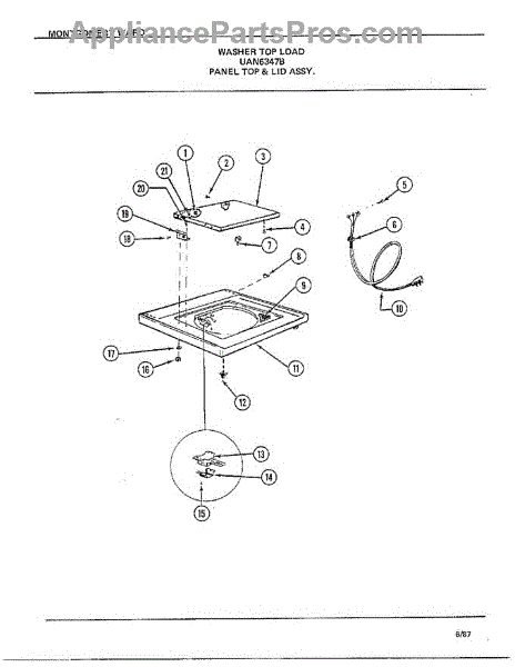 Parts for Frigidaire 6347B: Panel Top And Lid Assy Parts