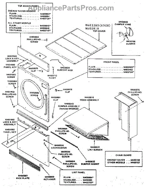 Parts for Kenmore 99937CG: Panels, Guards And Lint Hood Assembly Parts