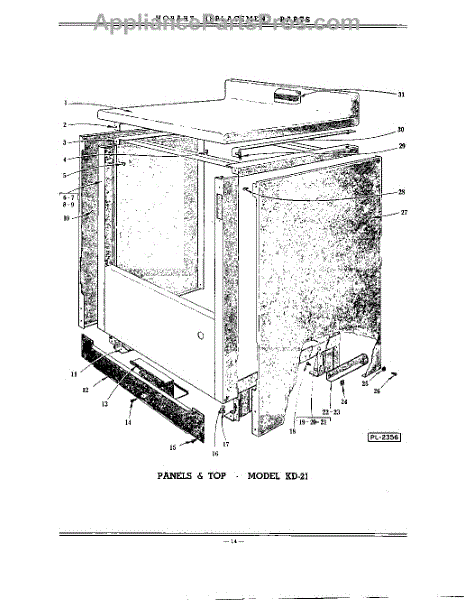 Parts for Kitchenaid KD31: 14 - Panels & Top - Kd21 Parts