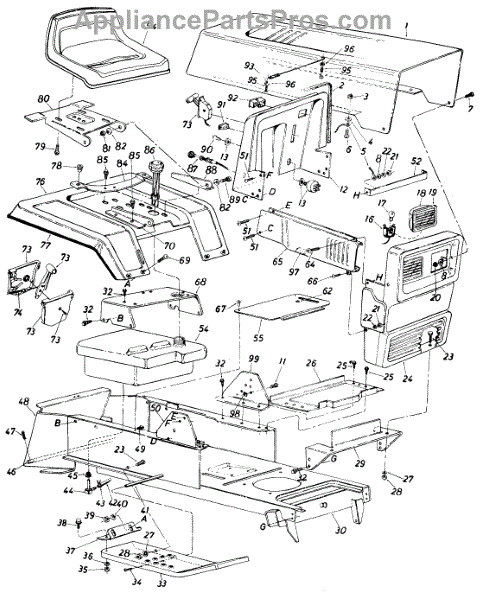 Replacement tap screw for lawn tractors and riding mowers. Secures covers, panels, and components. Needed when original screw is stripped, lost, or damaged.