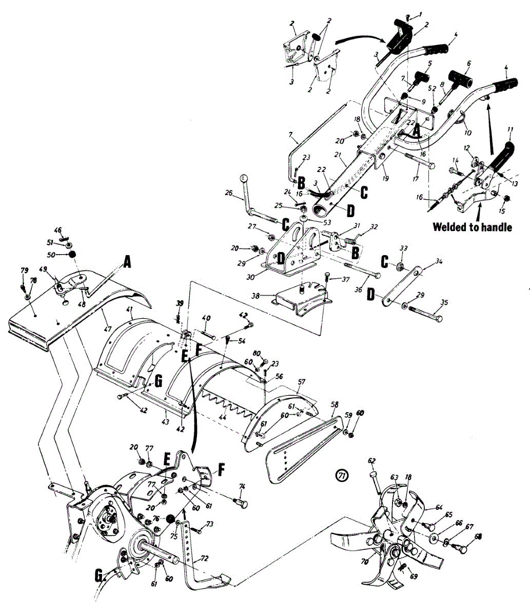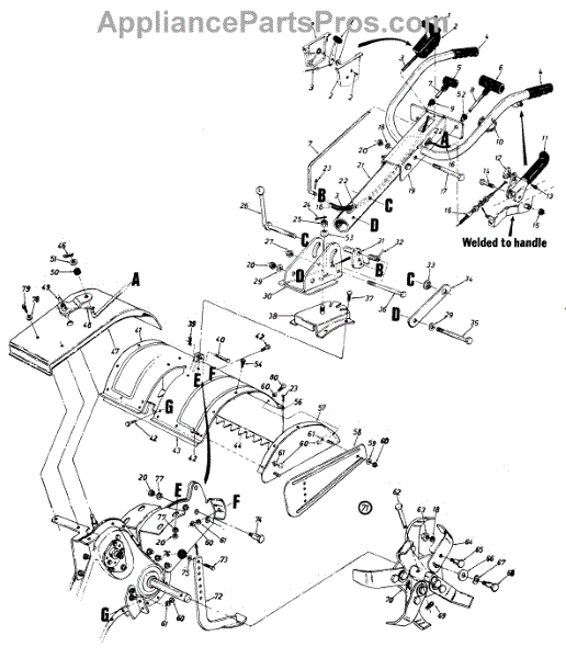 Replacement debris guard flap for rear-tine tillers. Shields operator from flying rocks and soil. Replace if torn, cracked, bent, or missing.