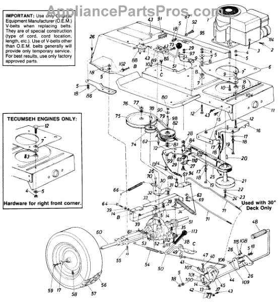 Metal spring clip that fastens the deck to the frame on lawn tractors and mowers. Replace if broken, bent, missing, or no longer holding tension.