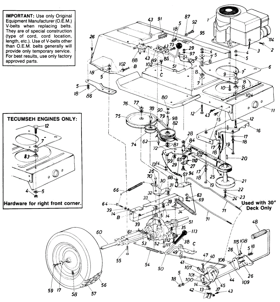 Hex screw for lawn tractors, mowers, snow blowers, and tillers. Replaces broken, stripped, or missing screws in various assembly points.