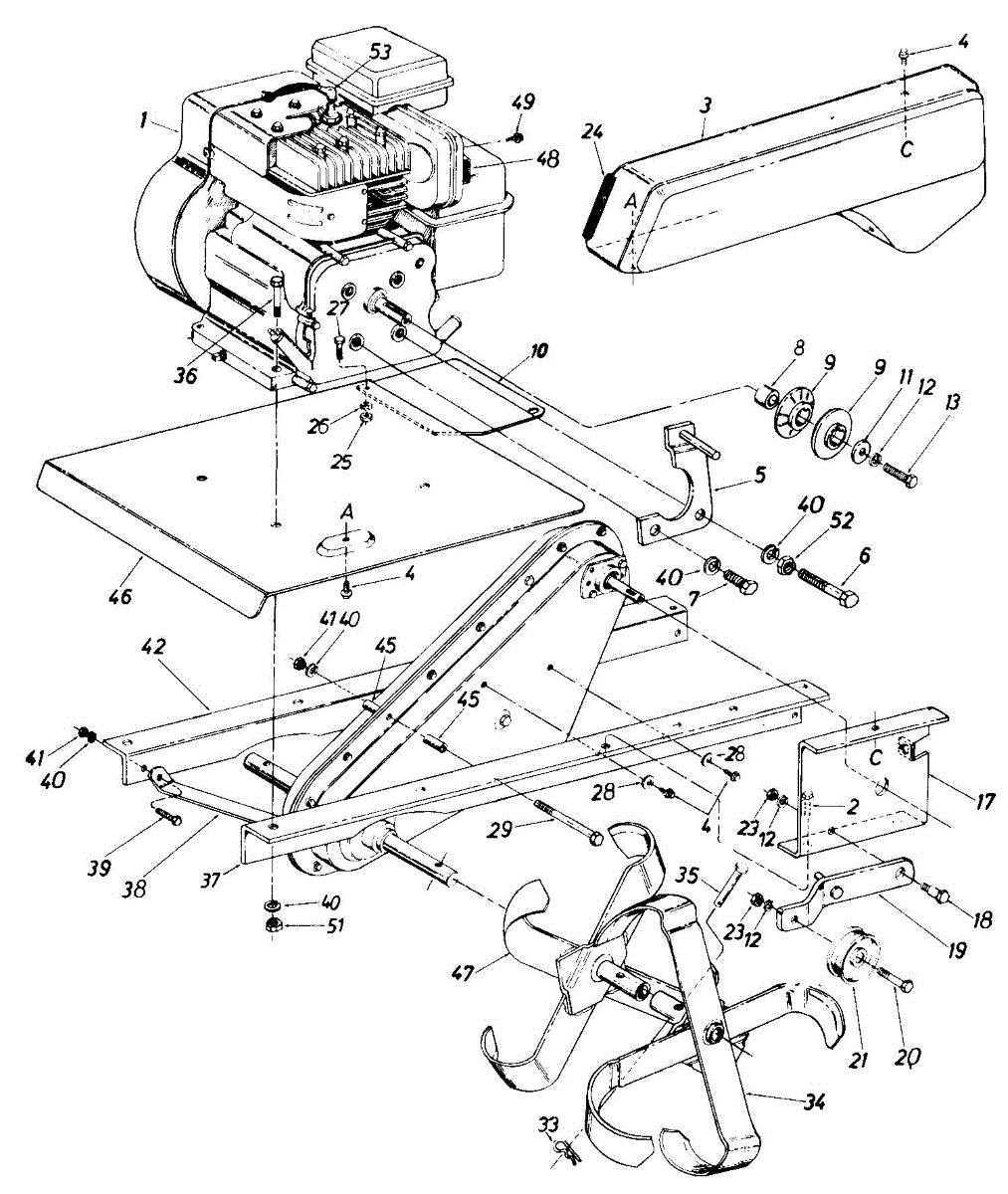Hex screw fastener for securing lawn mower components. Replace if stripped, rusted, or missing to ensure proper assembly and equipment stability.