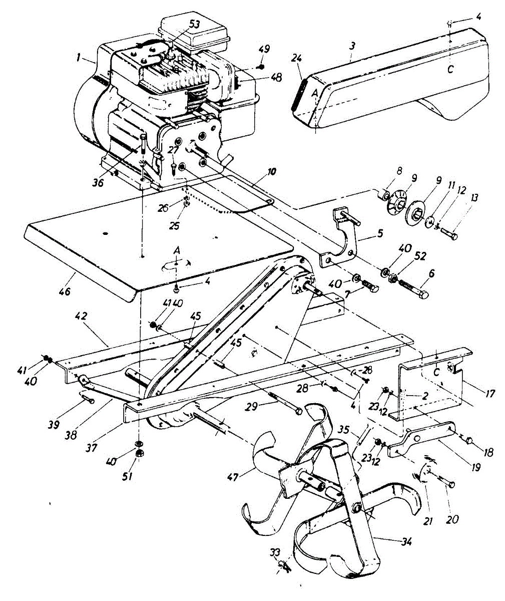 Hex screw fastener for securing lawn mower components. Replace if stripped, rusted, or missing to ensure proper assembly and equipment stability.