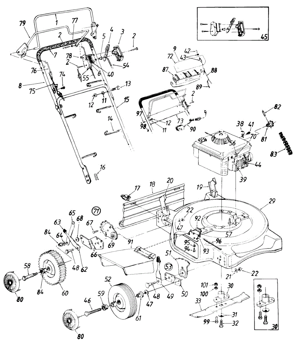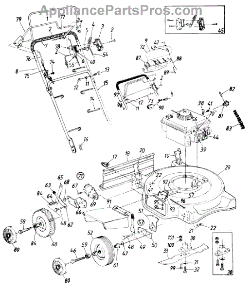 Replaces cracked or broken blade height adjustment brackets on walk-behind mowers. Secures cutting deck leveling mechanism. Needed when missing or worn.