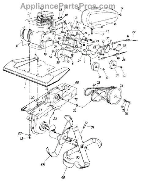 Flat washer used on tillers and outdoor power equipment. Installs under bolts or nuts to distribute load and prevent loosening. Replace if cracked or missing.