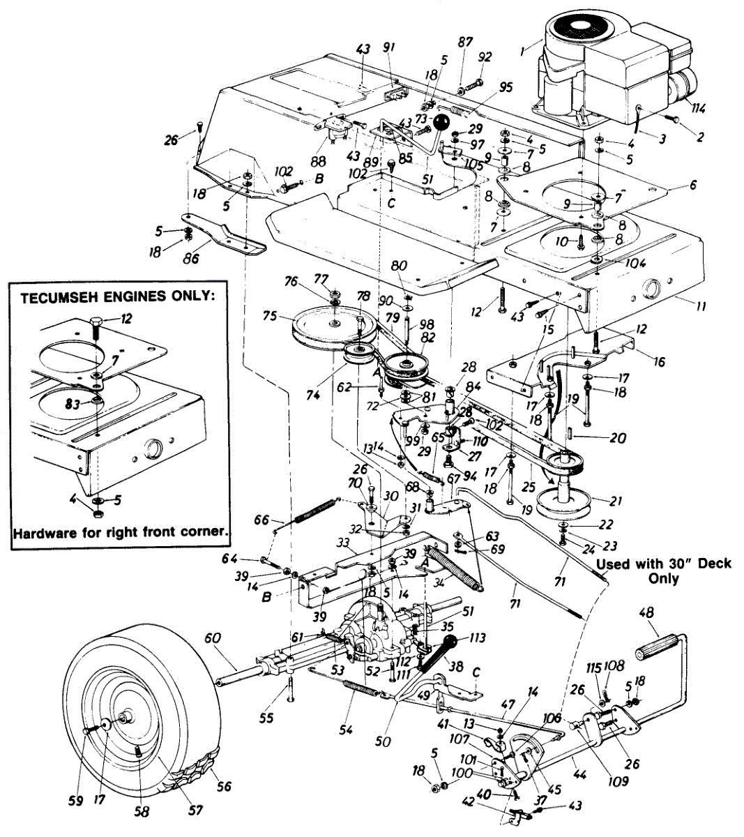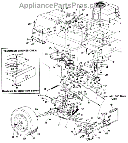 Metal spring clip that fastens the deck to the frame on lawn tractors and mowers. Replace if broken, bent, missing, or no longer holding tension.