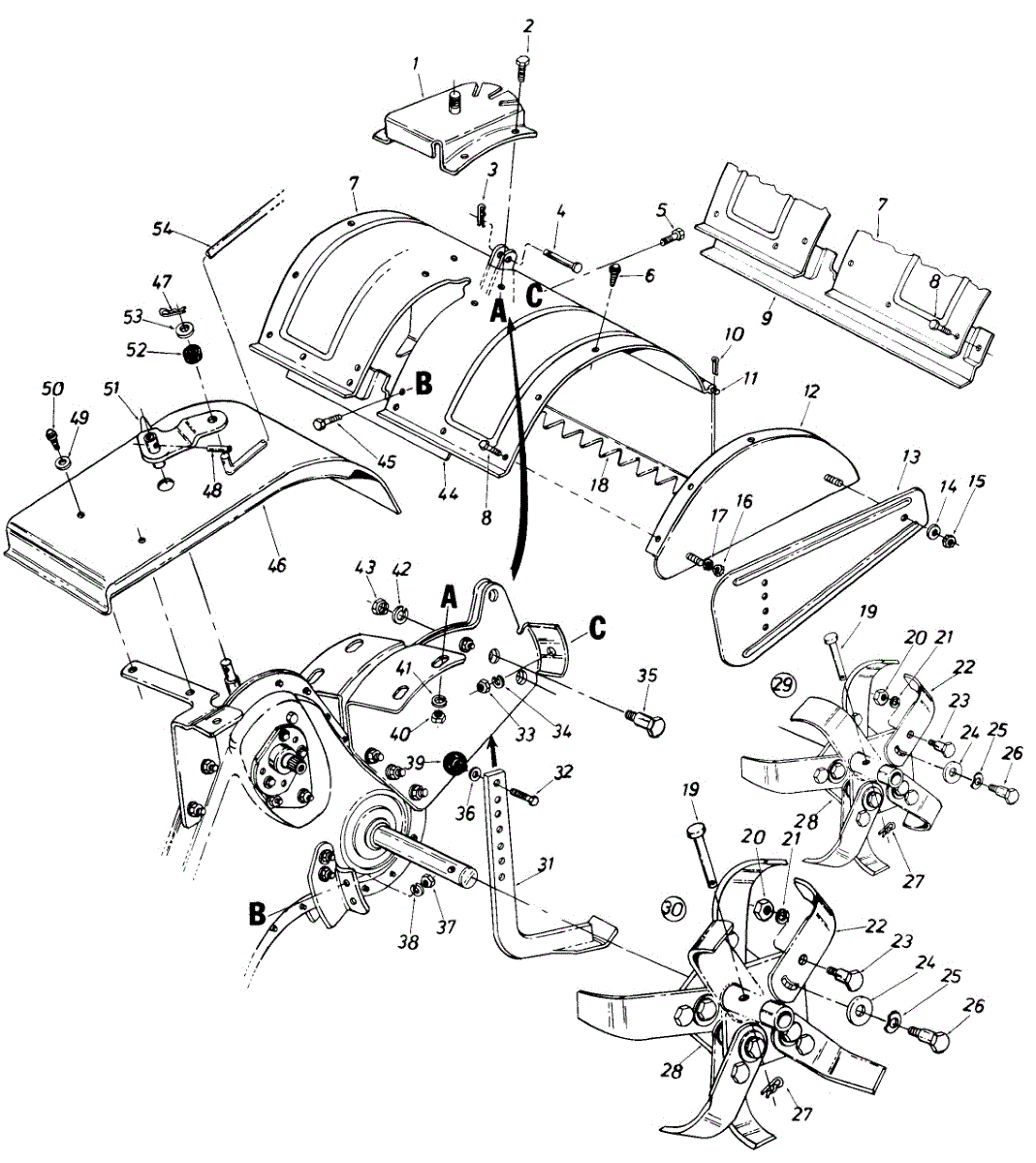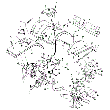 Replacement debris guard flap for rear-tine tillers. Shields operator from flying rocks and soil. Replace if torn, cracked, bent, or missing.