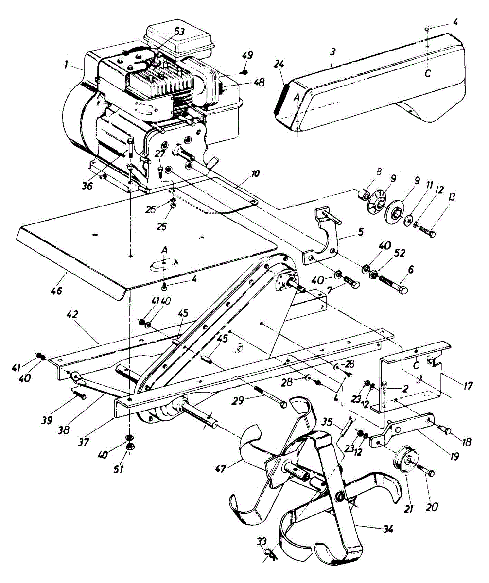 Hex screw fastener for securing lawn mower components. Replace if stripped, rusted, or missing to ensure proper assembly and equipment stability.