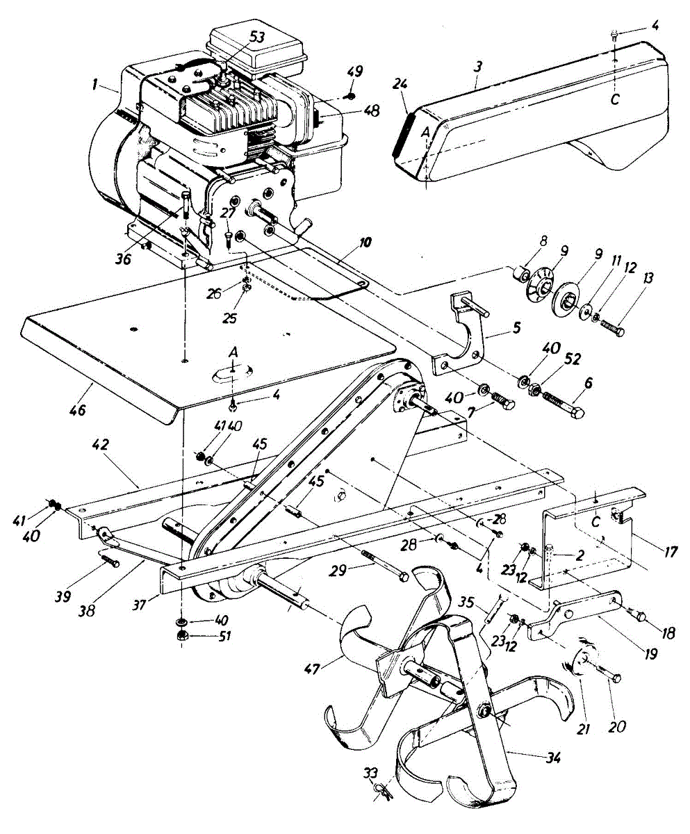 Hex head screw for securing components on lawn mowers, tractors, and outdoor power equipment. Replace if missing, stripped, or damaged during maintenance.