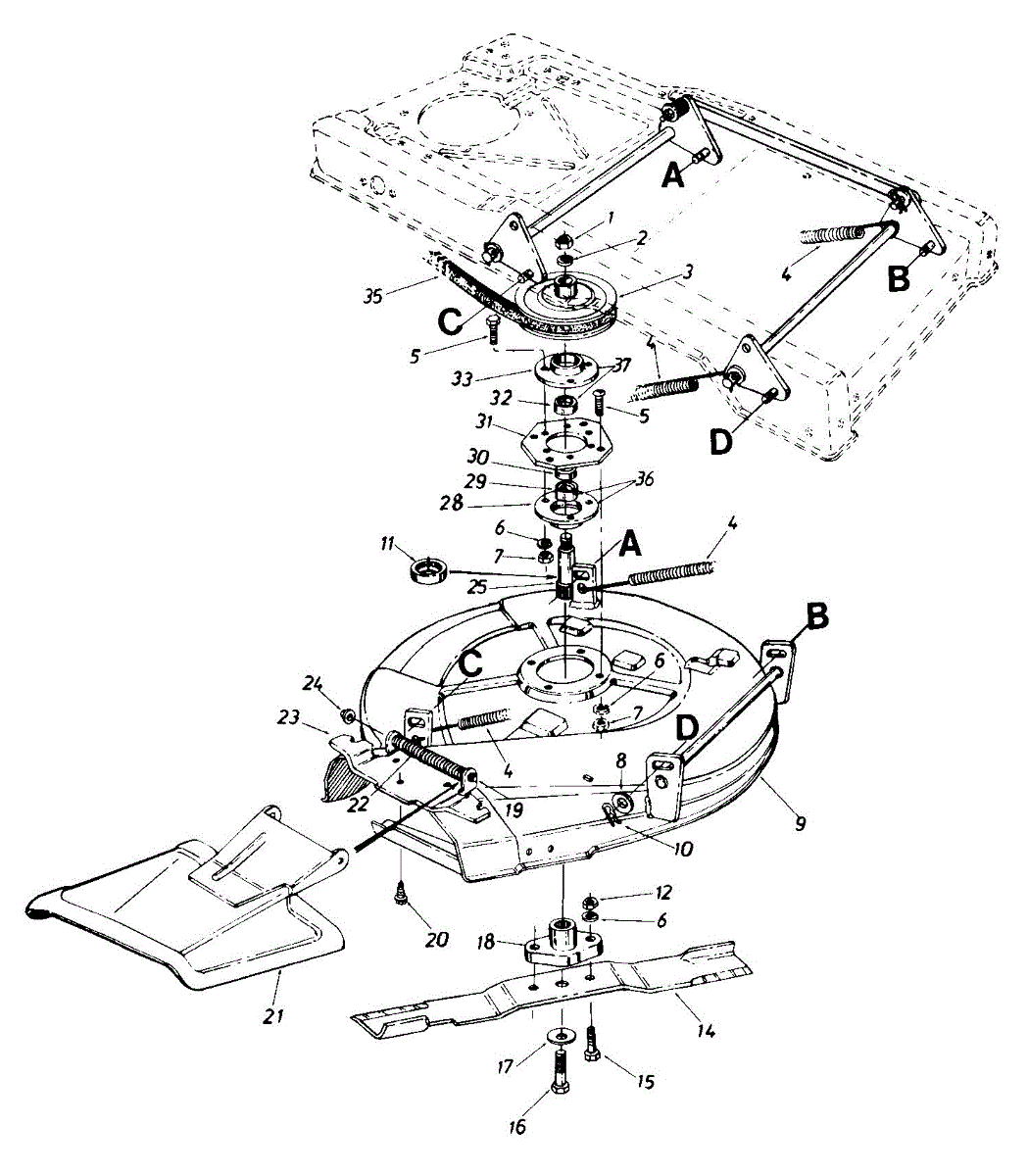 Blade adapter that mounts between the mower blade and spindle shaft. Replace if cracked, stripped, or worn to ensure secure blade attachment and safe operation.