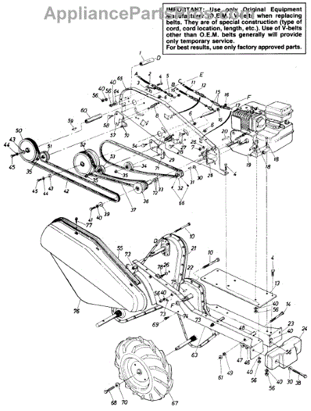 This replacement part is a screw. It is a genuine replacement part made by MTD. Typically screws are found in many different types of machines. These parts are important in holding different pieces together so that the user is able to operate the appliance effectively. A replacement screw might be needed if some parts of the appliance are loose or missing from place. Screws can become stripped over time with normal equipment use. If this is the case it is recommended that they be replaced as soon as possible. The repair for this screw is simple and will most likely require common household tools as well as pliers if the previous part is lodged in place. This screw is made of durable metal. This part is sold individually and is sourced directly from the manufacturer to ensure proper fit. This is a genuine OEM replacement part.