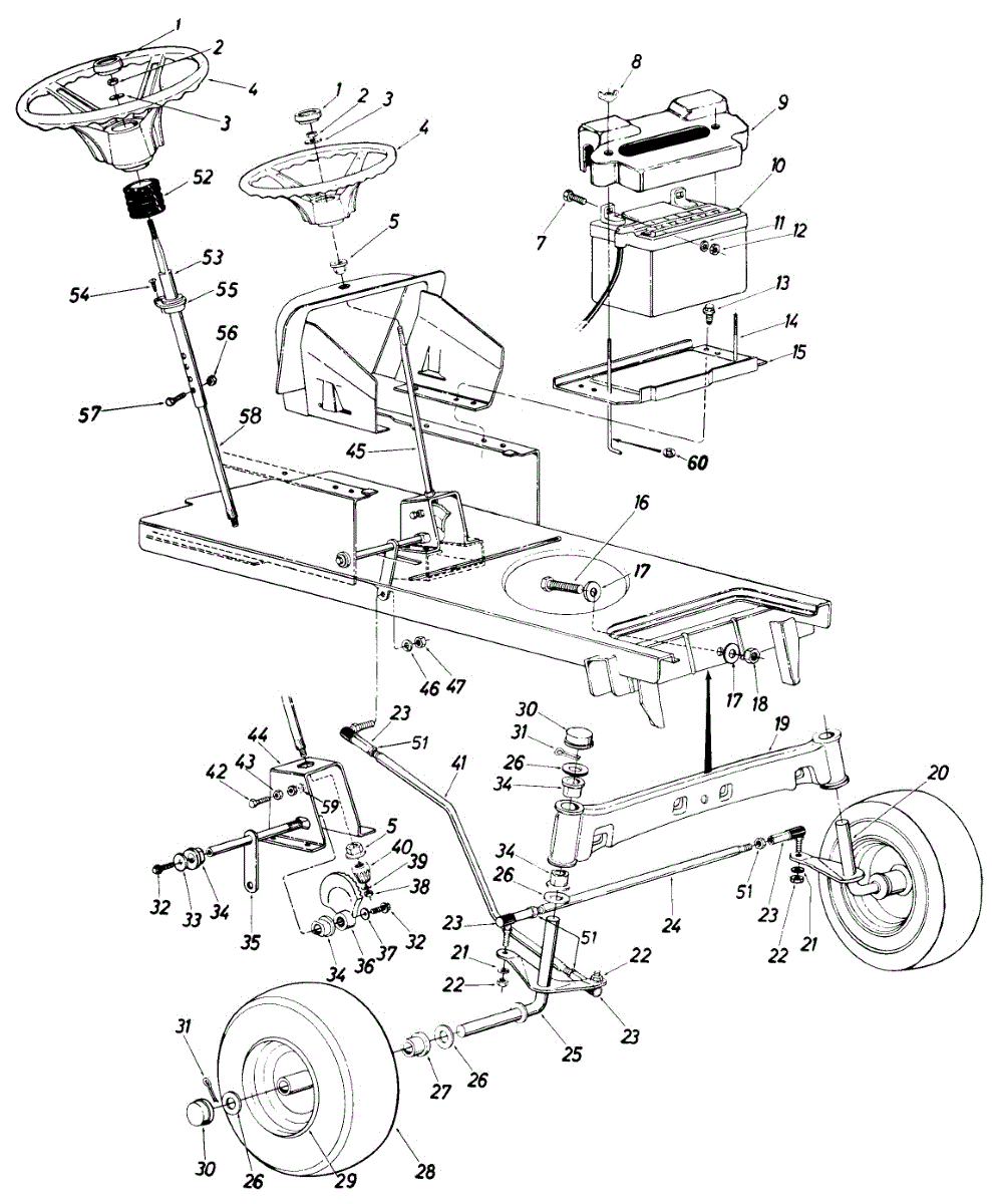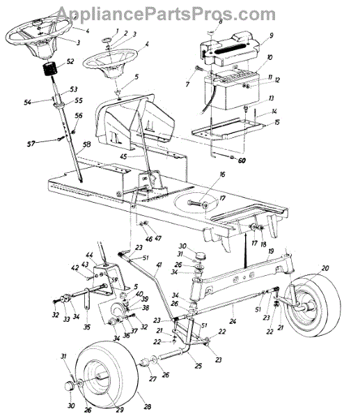 Drag link connects the steering gear to the front axle on garden tractors. Replace if bent, worn, or missing for proper steering alignment and control.