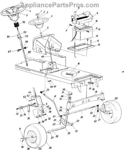 Drag link connects the steering gear to the front axle on garden tractors. Replace if bent, worn, or missing for proper steering alignment and control.